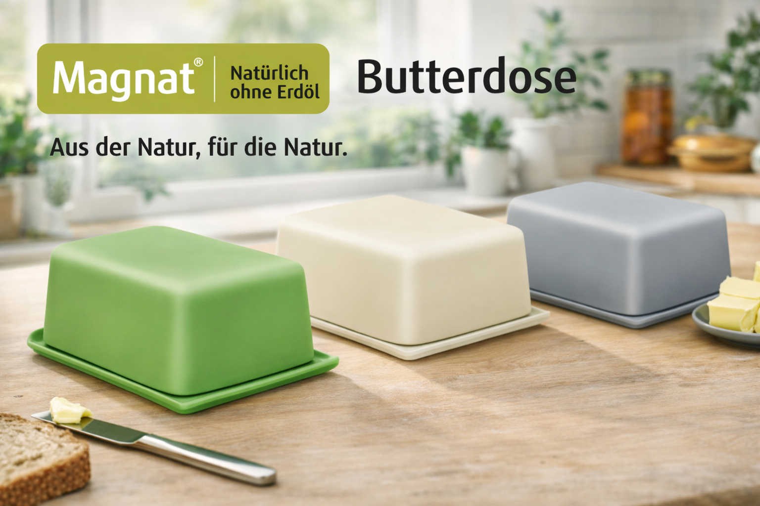 Unsere Butterdosen verbinden praktische Aufbewahrung mit einer klaren, zeitlosen Gestaltung. Sie schützen Butter zuverlässig, halten sie griffbereit und fügen sich harmonisch in Küche und gedeckten Tisch ein.